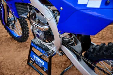 YZ250Fs KYB-gaffel ansees som best i klassen, og den nyeste generasjonen sykler har oppdaterte gaffelinnstillinger og en håndjusterbar kompresjonsdemping. Monocross-bakfjæringen av link-typen og KYB-demperen med den nyeste fjæringslinken har optimaliserte innstillinger for bedre grep ut av kurver – og Power Tuner-appen inneholder nyttige fjæringsinnstillingsdata for raske og nøyaktige manuelle justeringer.