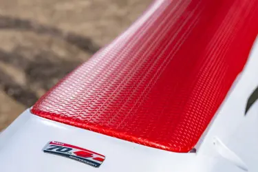 YZ450F 70th Anniversary Edition har en fantastisk hvit og rød fargekombo inspirert av YZM400F, den aller første maskinen med 4-takt som tok seire i Motocross World Championship og i AMA Supercross, og hyller Yamahas lange og vellykkede racinghistorie. Nytt karosseri gir en moderne look med den slanke og lave løpsnummerplaten, todelte sidedeksler og den nye bakskjermen.